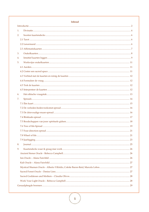 Deze cursus is voor jou als je voelt dat de kaarten je roepen. Het handboek en werkboek zijn digitaal verkrijgbaar. Persoonlijke sessies van ongeveer een uur kun je op elk moment aanvragen, wanneer jij behoefte voelt aan verdieping of begeleiding.