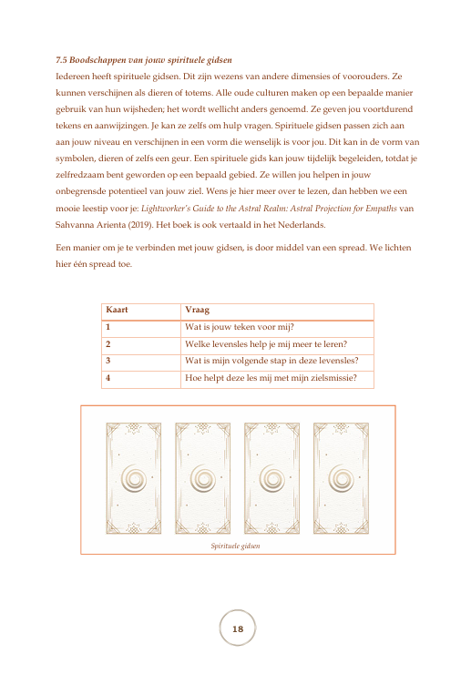Voor deze (zelf)cursus heb ik met veel zorg en liefde een handboek met bijbehorende werkboek gecreëerd over intuïtief kaarten leggen. Het is geen klassieke handleiding, maar een uitnodiging om via de kaarten contact te maken met je innerlijke stem, jouw intuïtie, de wereld van symboliek, gidsen en energie. Je hebt geen voorkennis nodig en zelfs nog geen eigen kaartendeck. We beginnen precies daar waar jij nu bent.